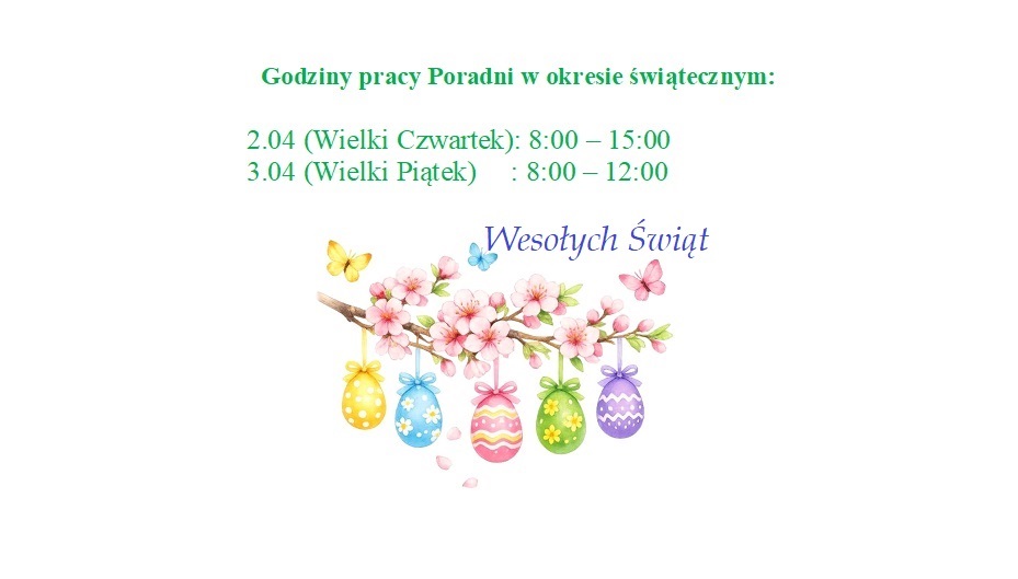 Godziny pracy Poradni w okresie świątecznym - Poradnia Psychologiczno-Pedagogiczna nr 4